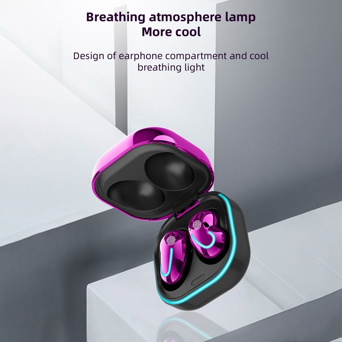Breathing atmosphere lamp design of earphone and charge box, cool effect.