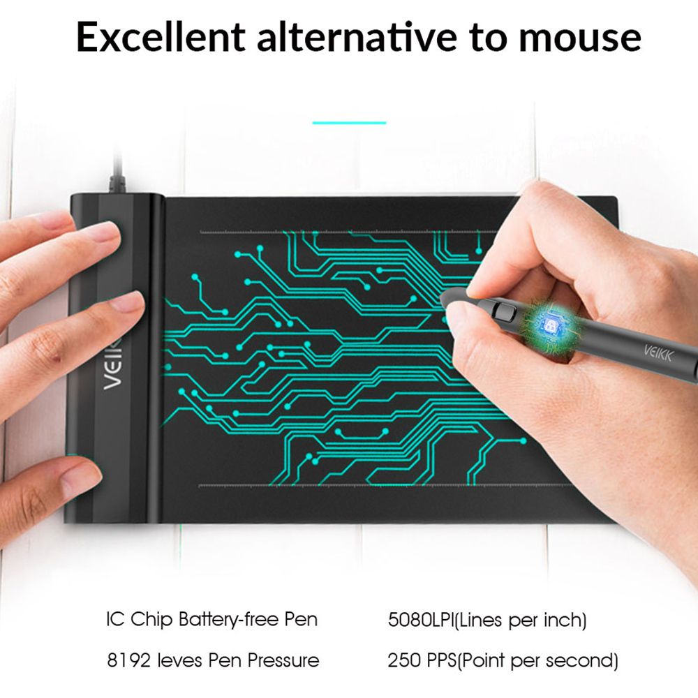 VEIKK S640 Graphics Digital Tablet with Battery-free Pen 8192 Levels Pressure Sensitivity 250PPS 5080LPI High-relolution Handwriting Tablet Electromagnetic Digitizer Compatible With Android Windows Mac