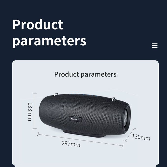 1.75W Bass with Dual Pairing - To achieve the incredible 75W, Zealot S67 comes with an exclusive custom 2 woofers and 1 tweeter. Combine with DSP chip for top-of-the-line bass stereo effect. Crazy and shocking. In addition, it is equipped with a dual pairing function, like a live concert experience2.14,400 Mah Battery - More power, better bass. What else? To support the perfect performance of the speaker, it uses a large capacity of 14,400 mah battery as the base of the speaker, up to 50 hours of playback time, and can charge phones, tablets and other devices while playing3. Different Sound Effects - On Sound, Zealot all the investment is worth it. Do you want clear voices? Or a more bass effect. EQ button for you to achieve, 3 sound modes, to meet your listening preferences. The clear and dynamic mode light changes allow you to use at willAre you still worried? - Best Bluetooth 5.0 technology, up to 100 feet of connection range without distortion. IPX6 waterproof to meet the use of waterproof requirements, hard shell, removable strap, indoor and outdoor scenes at will switch. TF card, AUX, U disk play and other different functions for travel preparation4.Finally: 13 years of sound quality precipitation, created for sharing. If you have any questions or suggestions about the use and sound quality, Kim will be happy to discuss them with you and reply within 24 hours