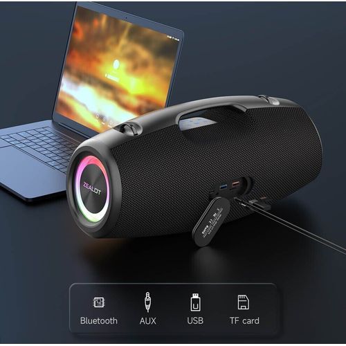 1.75W Bass with Dual Pairing - To achieve the incredible 75W, Zealot S67 comes with an exclusive custom 2 woofers and 1 tweeter. Combine with DSP chip for top of the line bass stereo effect. Crazy and shocking. In addition, it is equipped with a dual pairing function, like a live concert experience2.14,400 Mah Battery - More power, Better bass. What else? To support the perfect performance of the speaker, it uses a large capacity of 14,400 Mah battery as the base of the speaker, up to 50 hours of playback time, and can charge phones, tablets and other devices while playing 3.Different Sound Effects - On Sound, Zealot all the investment is worth it. You want clear voices? Or a more bass effect. EQ button for you to achieve, 3 sound modes, to meet your listening preferences. The clear and dynamic mode light changes allow you to use at will Are you still worried? - Best Bluetooth 5.0 technology, up to 100 feet of connection.