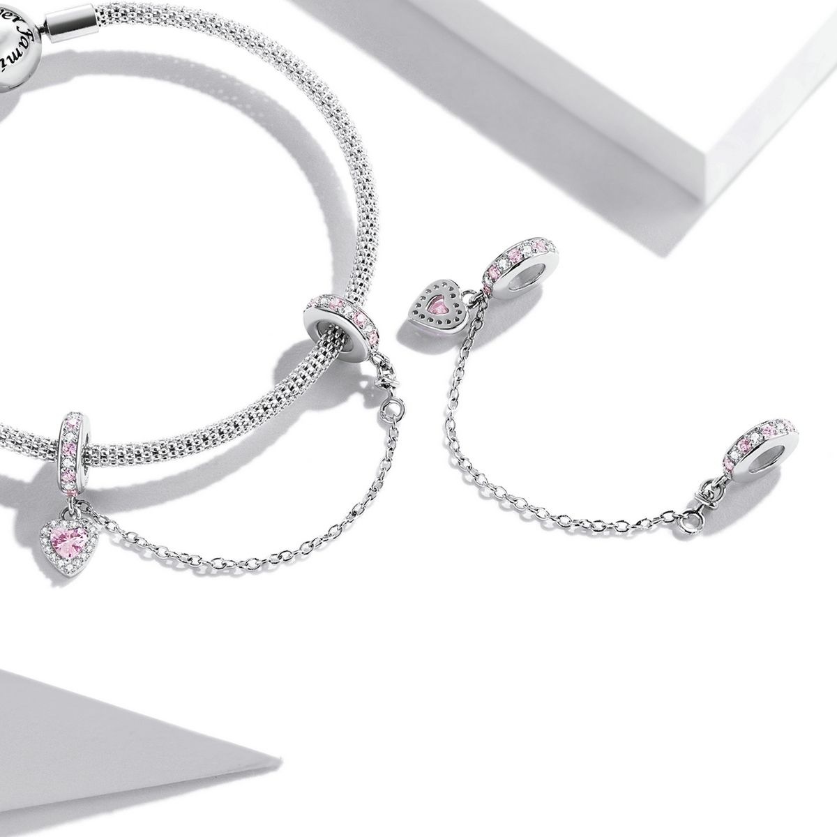 S925 Sterling Silver Heart Zircon Safety Chain