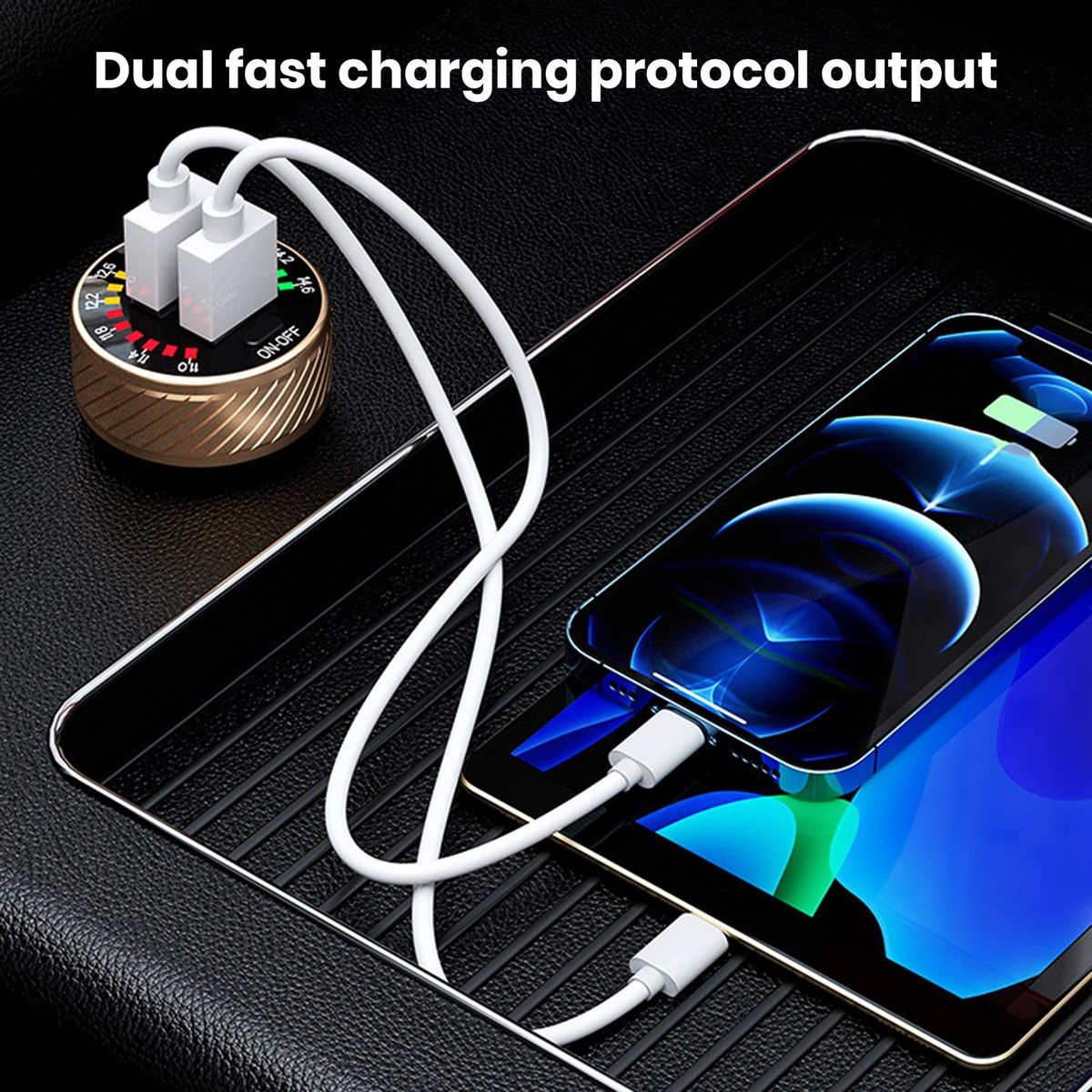 Our high-quality car charger, the perfect solution for charging your devices on the go. with advanced rectification technology, this charger boasts an impressive 93 power conversion rate, minimizing energy loss and maximizing charging efficiency. the durable metal body ensures long-term use and superior quality, while also facilitating faster heat dissipation for safe and reliable charging.