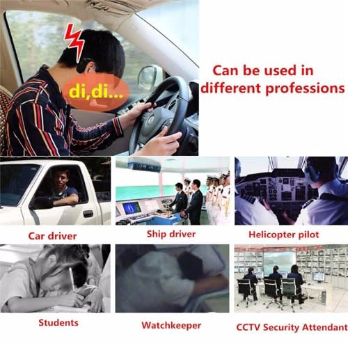Driver safety alarm to help prevent accidents caused by falling asleep at the wheel.Brand new anti-sleep alarm for drivers!Perfect for anyone who needs to keep alert on duty, like drivers, guards, machine operators, and even studentsSafe for long drive and drive at night.Especially suitable for long-distance driving or night driving Easy to use and comfortable to wear for a long time.Work on the study of human body balanceMain Function: Anti Sleep AlarmAlarm mode: sound alertFor dimensions:80 x 22 x 15mmBattery: button cell batteryLife Time: 30,000 nods