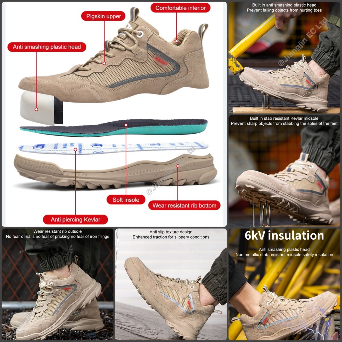 - Steel Toe Anti-crash: European standard steel toe head, withstand forces of up to 200 joules.