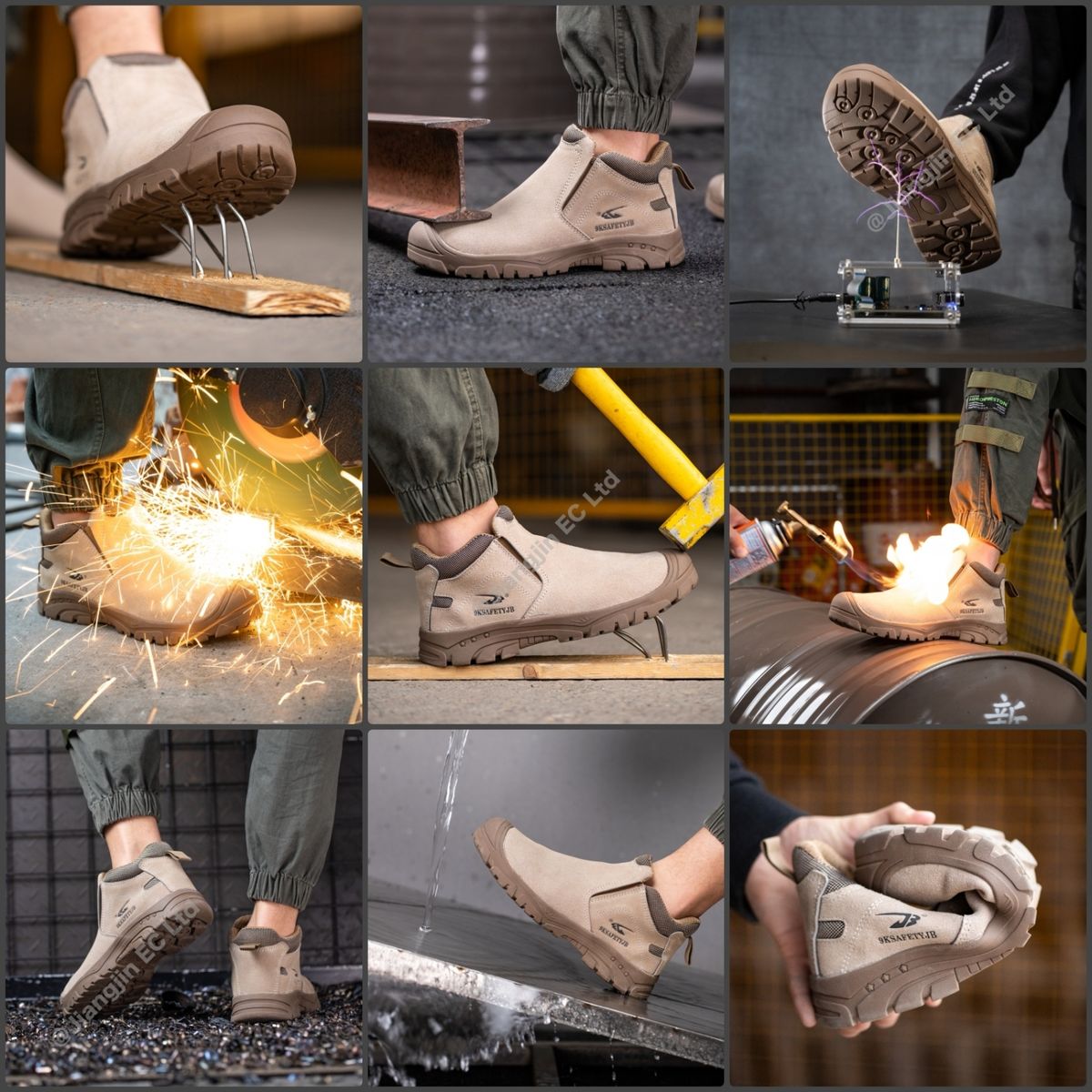 Utral light safety shoe: It is like the weight of a pair of running shoes. They can help you to work happily all day without exhausting your feet. With super soft insoles and High elastic sole, your feet are safe and comfortable.
