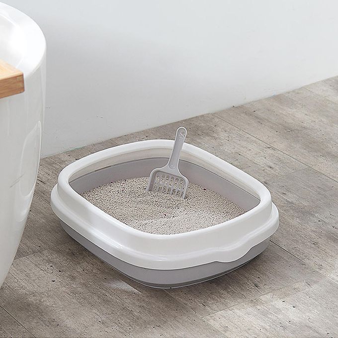 Cat Litter Tray ;Cat Litter Box Hooded Semi-Closed Tray;Pet Cats Kitten Toilet Scoop Shovel;Kitten Dog Clean Toilette Sand Box Container;Open Top High Rim Cat Litter Pan Bedpan;Anti-Splash Cats Litter Box Easy Clean