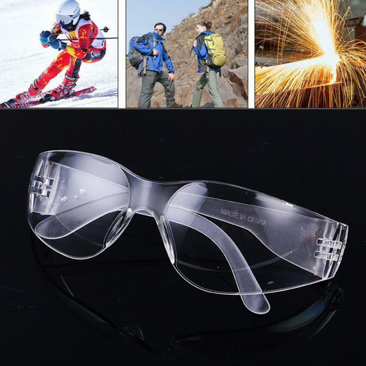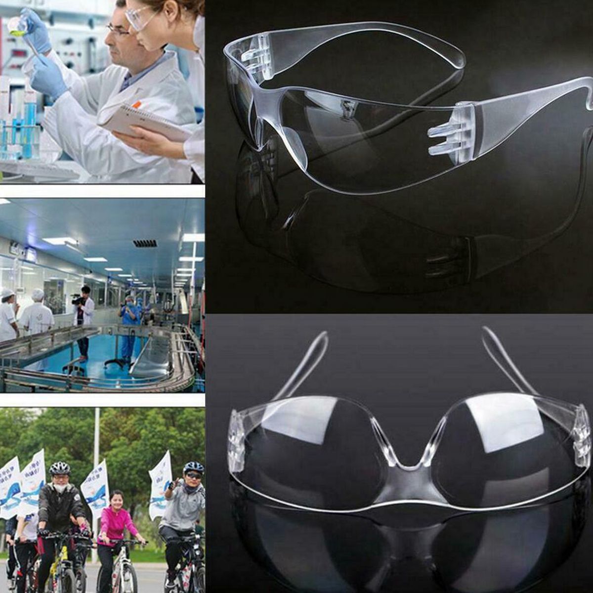 Super comfortable protective glasses, lightweight and durable.Fashionable fairshaped design, fits for many faces then can effectively protect eyes.UV protection: can also wear when driving motorcycles or bikes.Great for protecting your eyes from flying particles, dust, and while working.Material: Plastic