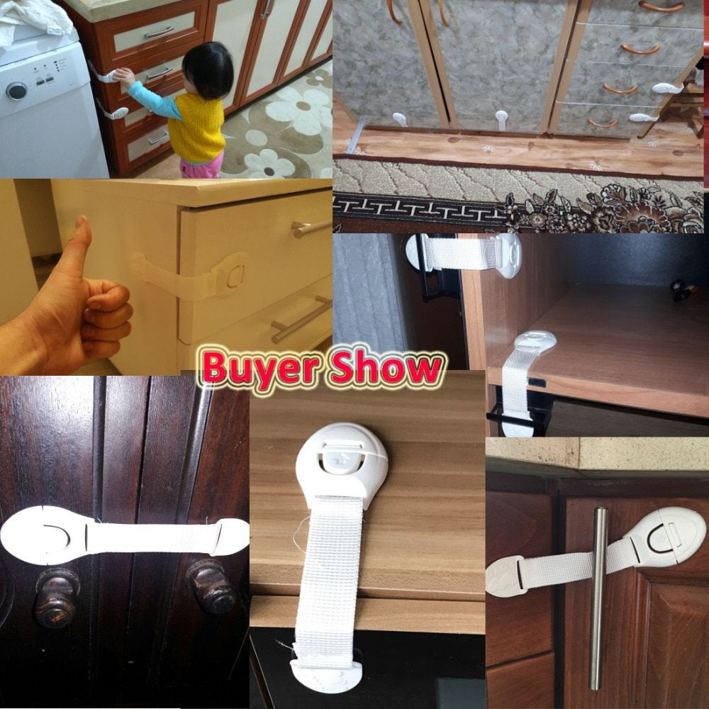 1X 5/6/10/20pcs Kids Safety Locks Cabinet Door Drawers Refrigerator Locks Children Safety Protection Plastic Security Locks Straps