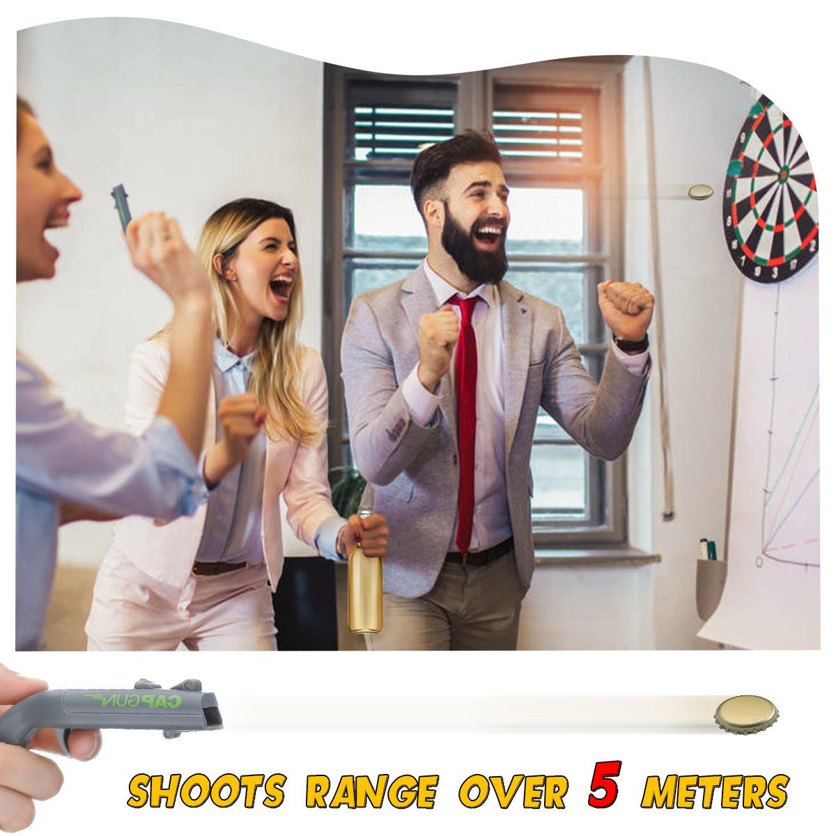 ?Entertaining?: The bottle opener set uses the design of a spring, trigger and magnet inside. After opening beer you can use it to put the bottle cap in the hole of the opener and then shoot it. Please never aim at people !!