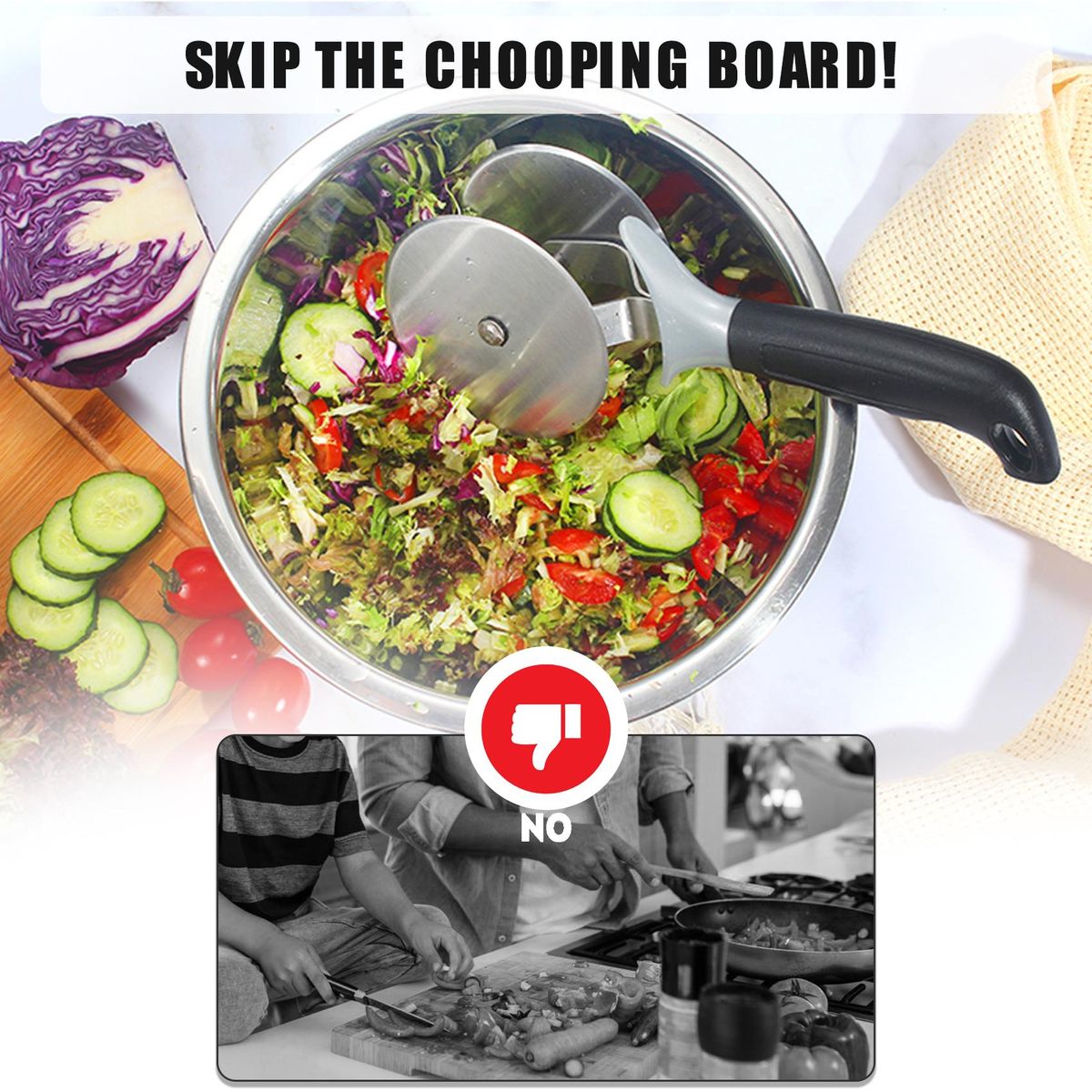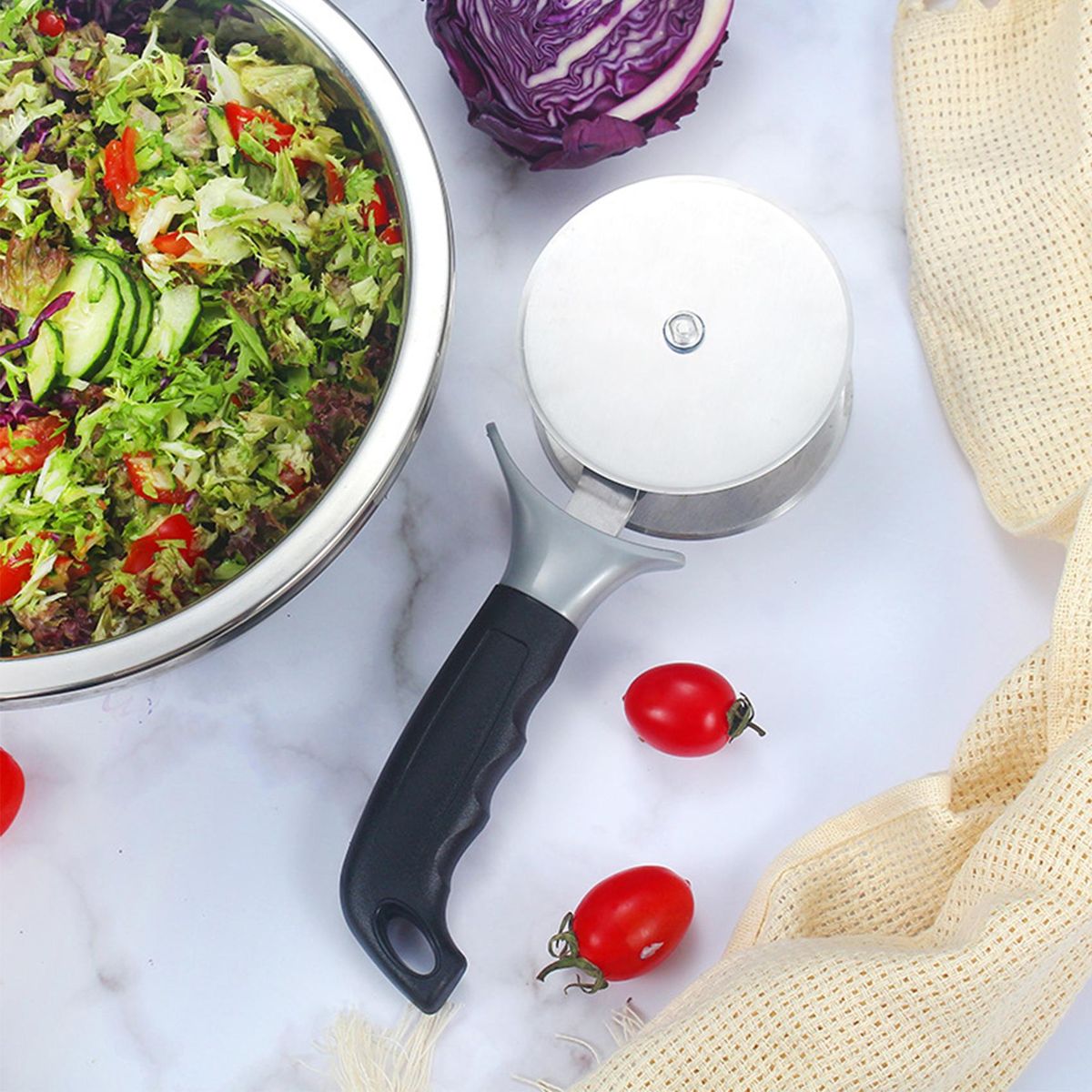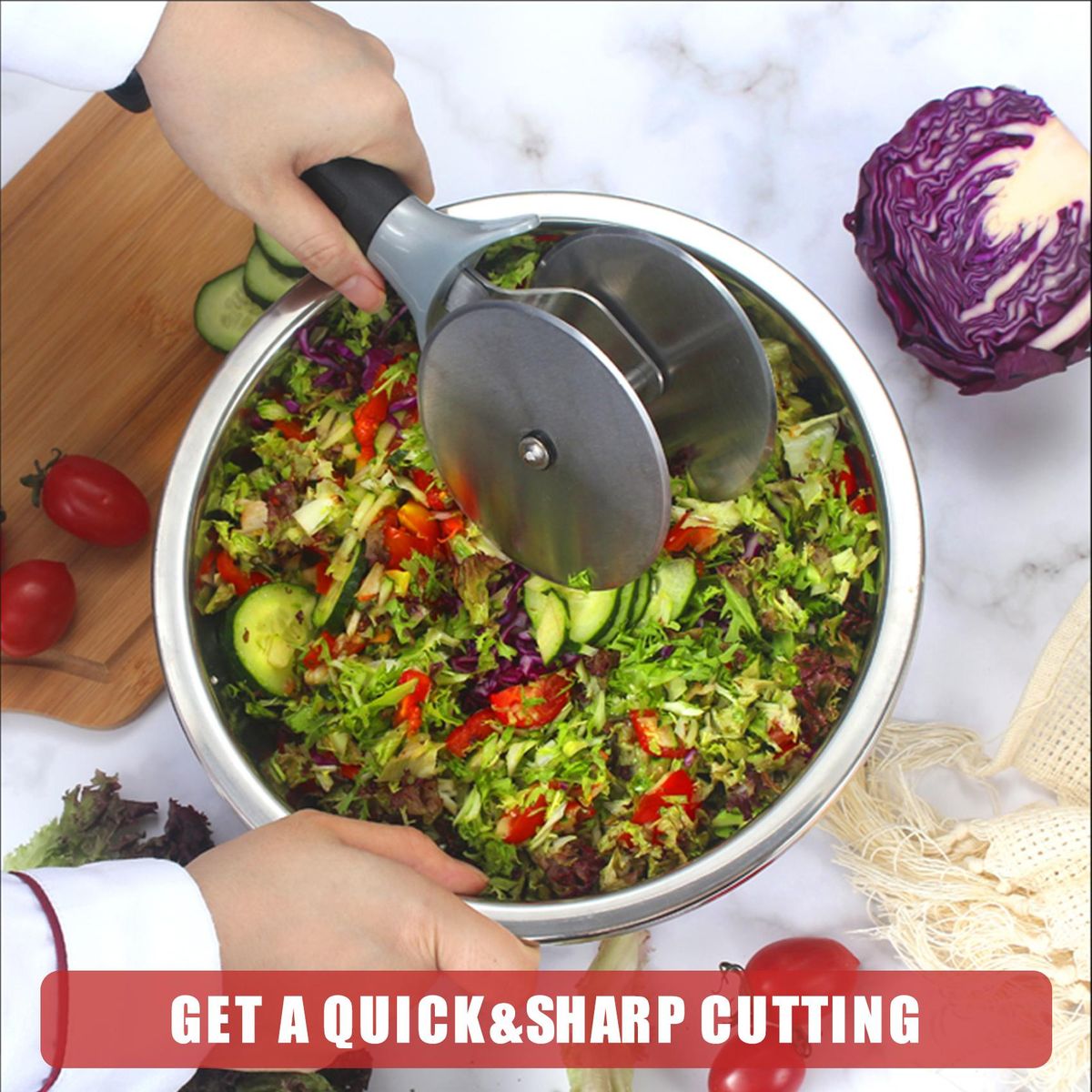 Buy Salad-Chopper with Protective-Covers Dual-Wheels Salad-Cutter Food-grade Stainless Steel Circle Cutter Quick Kitchen Prep in Nigeria