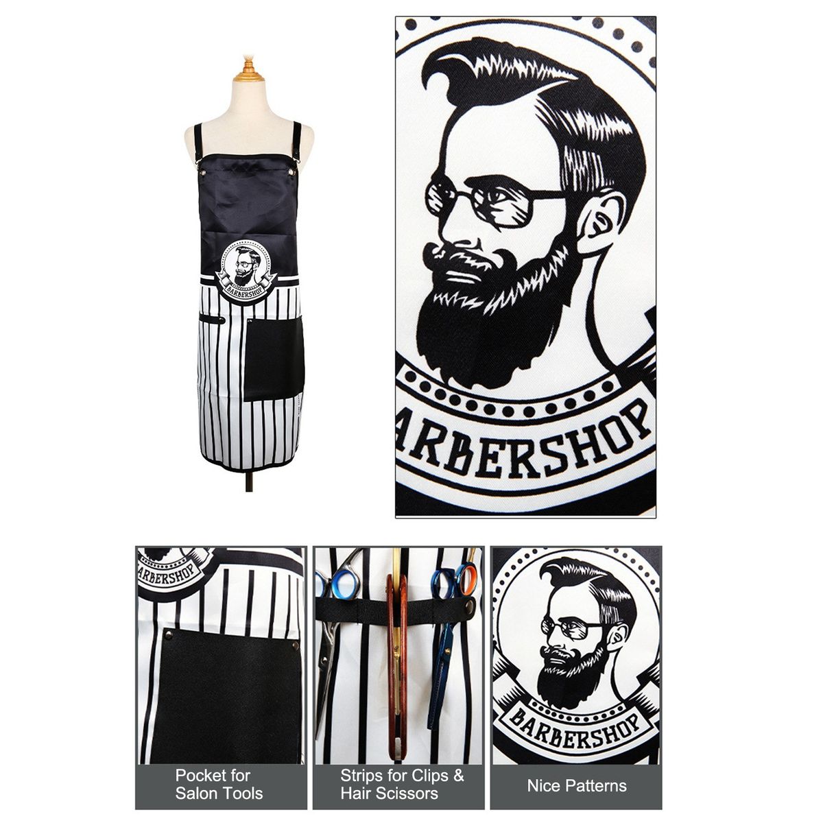 Comes with pockets, you can put hairdressing tools into it, like hair clips, combs and so on.
