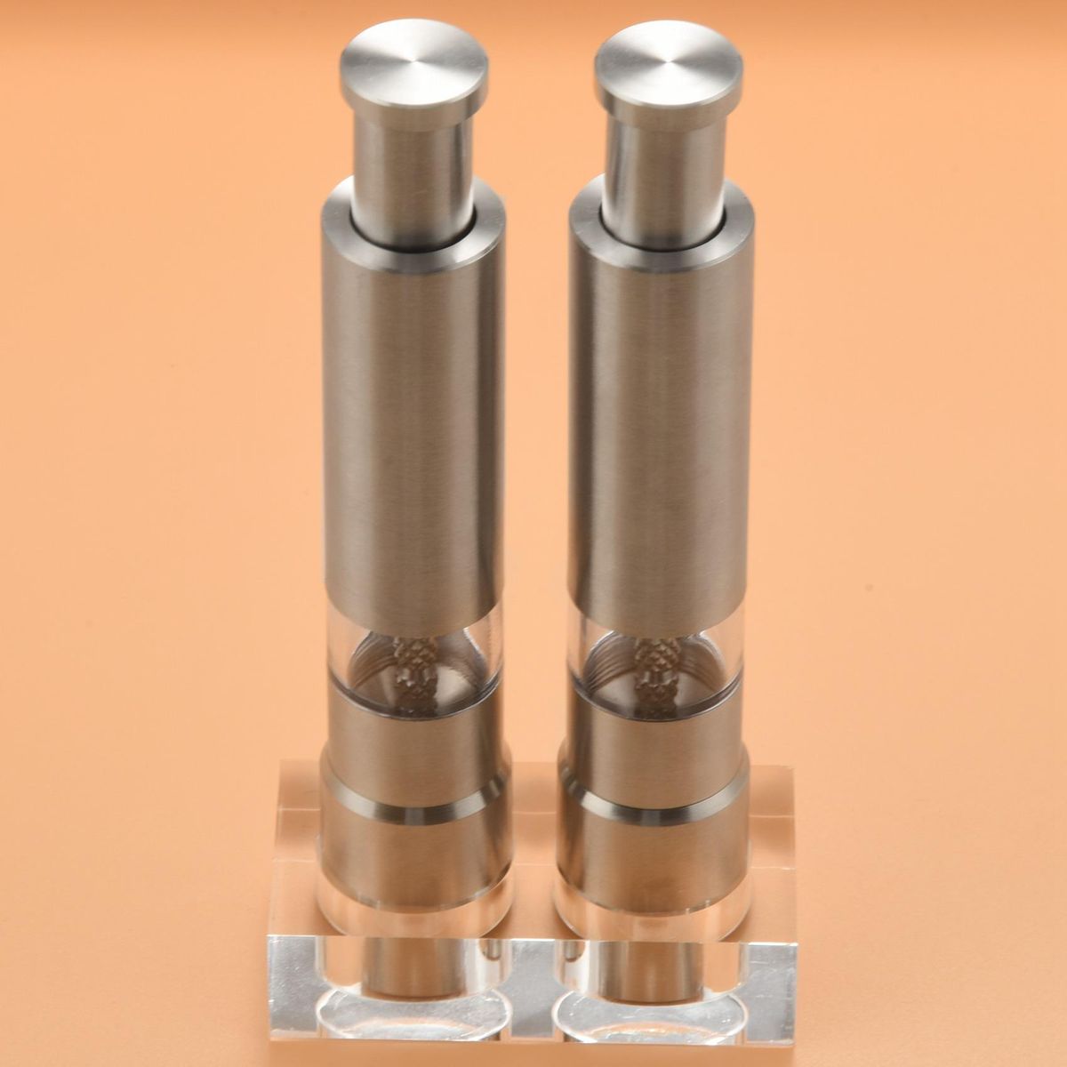 Pepper grinder with stand, easy to operate-after cooking once, you absolutely don't want to clean up the messy battlefield. Pack salt and pepper pair with the stand. Please put it on the stand after use, not only to ensure that the spices are not easy to be Moisture can also prevent spices from tilting and spilling