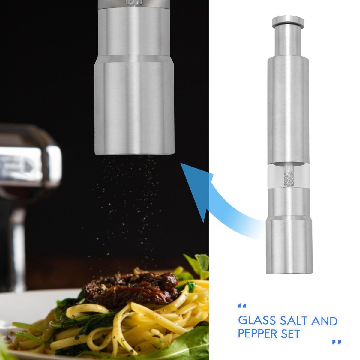 Corrosion-resistant and easy to clean-The stainless steel manual spice salt and pepper mill kit helps you avoid mixing wood chips or plastic with salt or spices, durable, corrosion-resistant, easy to clean, and saves cooking time