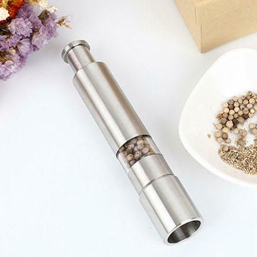 1.Pepper mill dispenses spice with speed and ease, press the top to grind pepper in a simple, one-handed operation way, screw off the bottom for refilling.