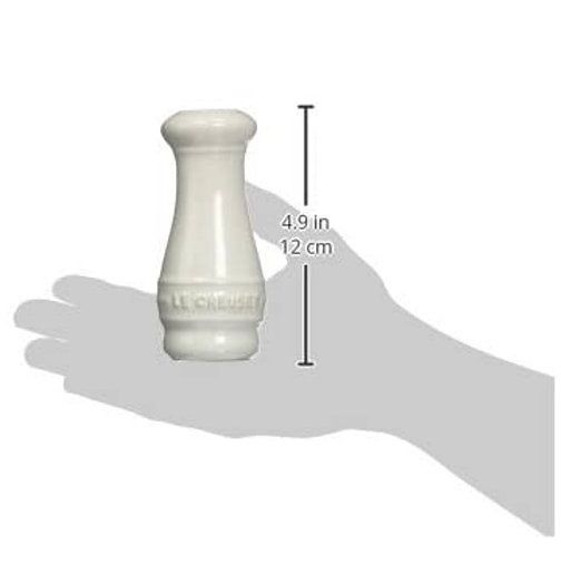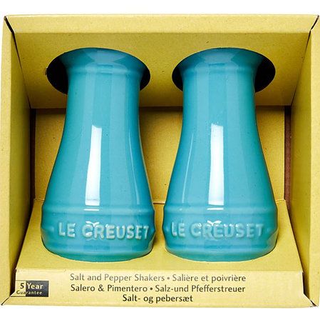 Whether kept on the table for use during meals or on the countertop for seasoning during cooking, the stoneware salt and pepper shakers make colorful accents during mealtime. Each holds four ounces of salt and pepper. Traditional Le Creuset rings and lettering give the set a decidedly classic feel.