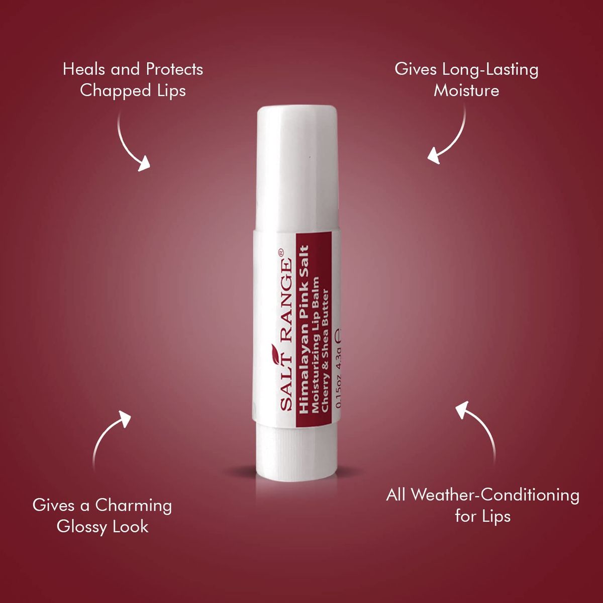 Salt Range Moisturizing lip balm can help to protect dry lip and reveal natural skin shine. Cherry is famous for its antioxidant and Vitamin C. Himalayan pink salt in the formula is called "the purest salt" in the world and contains up to 84 minerals. Infused with power packed Beeswax to condition skin and antioxidant Vitamin E to richly moisturize and soften lips, this lip balm nourishes dry lips while keeping them revitalized and hydrated. Conveniently tuck this tube into a pocket or purse, so that you can keep natural, nurturing lip care handy. Use this Moisturizing Lip Balm to make lips feel their best. Direction: Apply lip balm liberally to your lips as often as needed, particularly in dry, cold or windy conditions. Caution: Avoid contact with eyes and wounds. If irritation occurs, please stop using and seek for medical help. Store in a cool and dry place away from direct sunlight. Keep out of reach of children and pets. Ingredient: Mineral Oil, Petrolatum, Beeswax, Ceresin, Polyisobutene, Caprylic/Capric Triglyceride, Tridecyl Trimellitate, Butyrospermum Parkii (Shea Butter), Microcrystalline Wax, Caprylyl Methicone, Tocopheryl Acetate, Olea Europaea (Olive) Fruit Oil, Aloe Barbadensis Leaf Extract, Cocos Nucifera (Coconut) Oil, Hydrogenated Soybean Oil, Parum, Prunus Avium (Sweet Cherry) Seed Oil, Mineral Salts *Mineral Salts: Himalayan Pink Salt