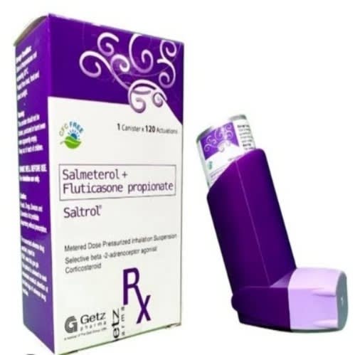 Easy to use Saltrol 25/125 mcg Inhaler is used for the treatment of shortness of breath and wheezing caused by inflammation of the airways as seen in asthma and ongoing lung problems such as emphysema, chronic bronchitis, and chronic obstructive pulmonary disease-COPD. Saltrol is a rectangular purple combination inhaler containing 2 medications, namely: a corticosteroid, and a long-acting bronchodilator. They can help to keep the airways open, and reduce inflammation and swelling in the lungs.