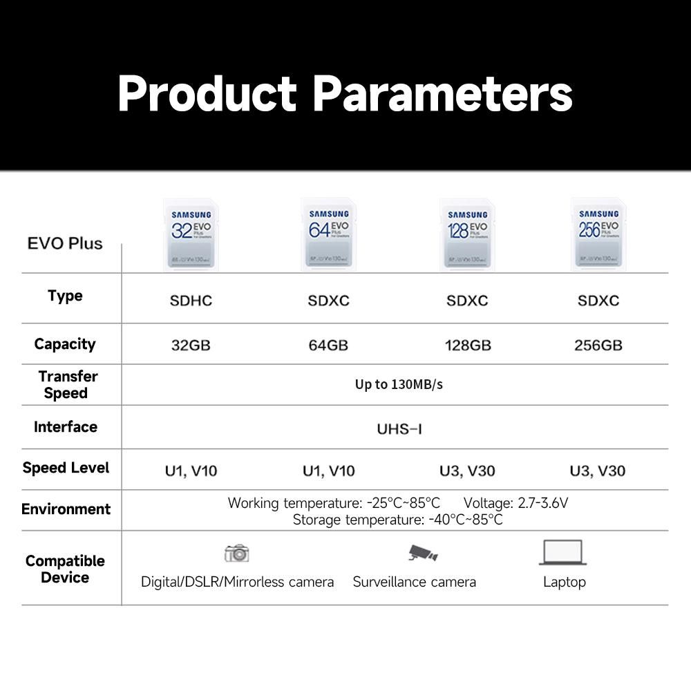 Buy SAMSUNG 256GB EVO Plus SD Card U3 V30 Speed Level up to 130MB/s Transmission Speed for Digital Camera Surveillance Camera Laptop in Nigeria