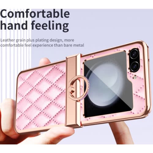 Buy Samsung Galaxy Z Flip 5 5g Leather Case With Ring Holder - Pink in Nigeria
