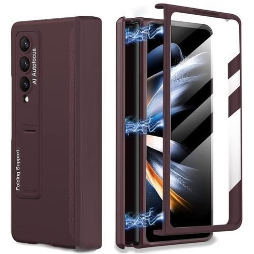 Buy Samsung Galaxy Z Fold4 Case, Without S Pen Slot-kickstand With Screen Protector- Burgundy in Nigeria