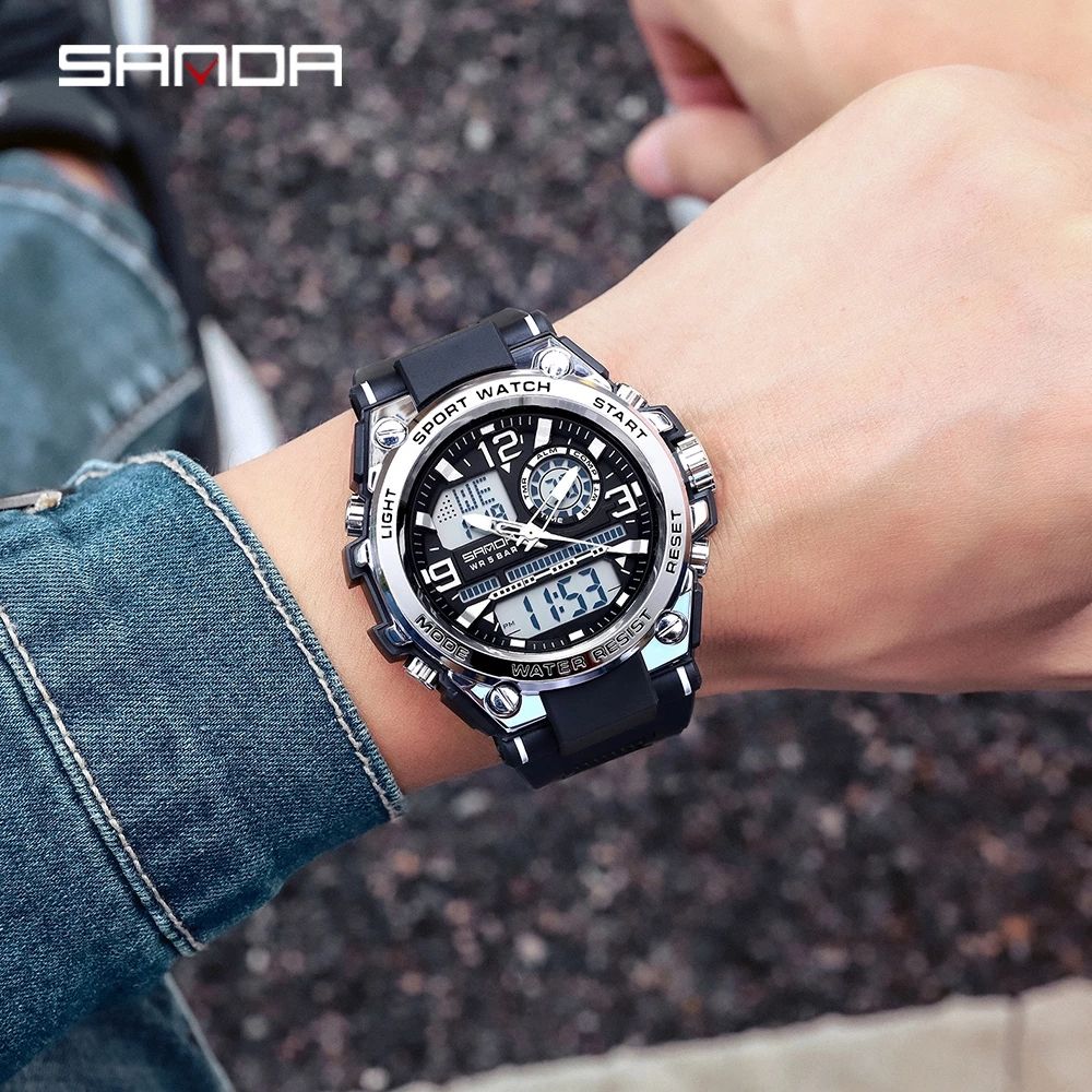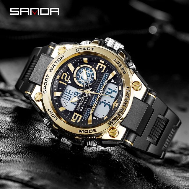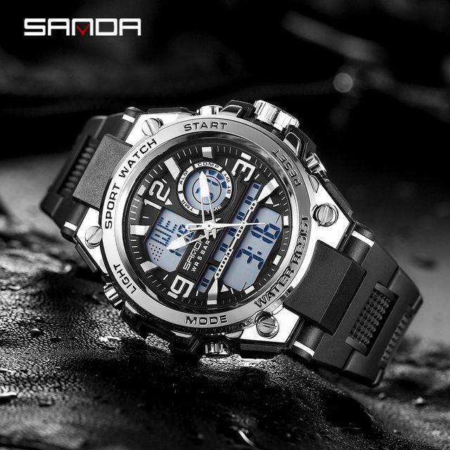 ★ Original watches from SANDA official store;★SANDA creative design and high-quality materials★Cycle: Quartz + LED digital electronic watch, shockproof, dustproof, and waterproof. The reinforced resin belt design is more ergonomic and comfortable to wearsuitable★ Multifunction: waterproof, tail light, alarm clock, perpetual calendar, LED display, highlight★Material: shockproof lightweight resin case, high-quality ABS plastic case and stainless steel case back, making the watch strong and highly transparentNameplate resin material, high frequency mechanical seal. The mineral dial window is very hard and pressure resistant, and the durable German resin strap is of high qualityMaterial★ Original imported Japanese MAXCELL battery: Japanese battery can provide strong power for the watch, Japanese imported movement: high precision★ 3ATM waterproof: wear a watch when showering, showering or swimming. (Note: Do not press any buttons in the water).★Gift objects: sports talents, mountaineering, cycling, April Fools' Day, birthdays, event programs, wild models, white-collar business, graduationCeremony and Valentine's Day, anniversary or as a gift for business and parties.