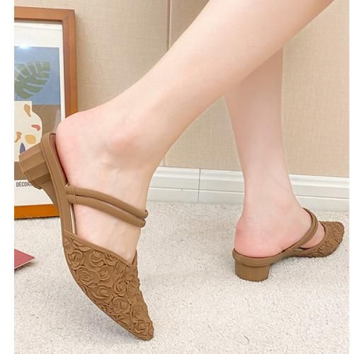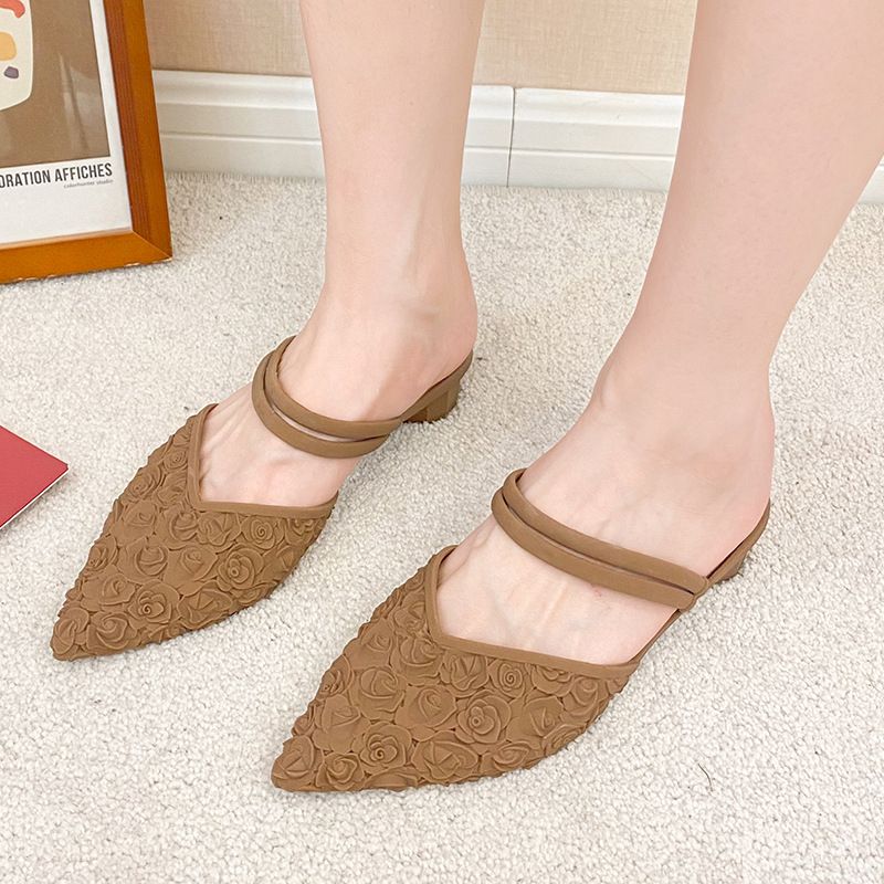 - Sandal single shoe pointed thick heel medium heel waterproof casual single shoe plastic non-slip