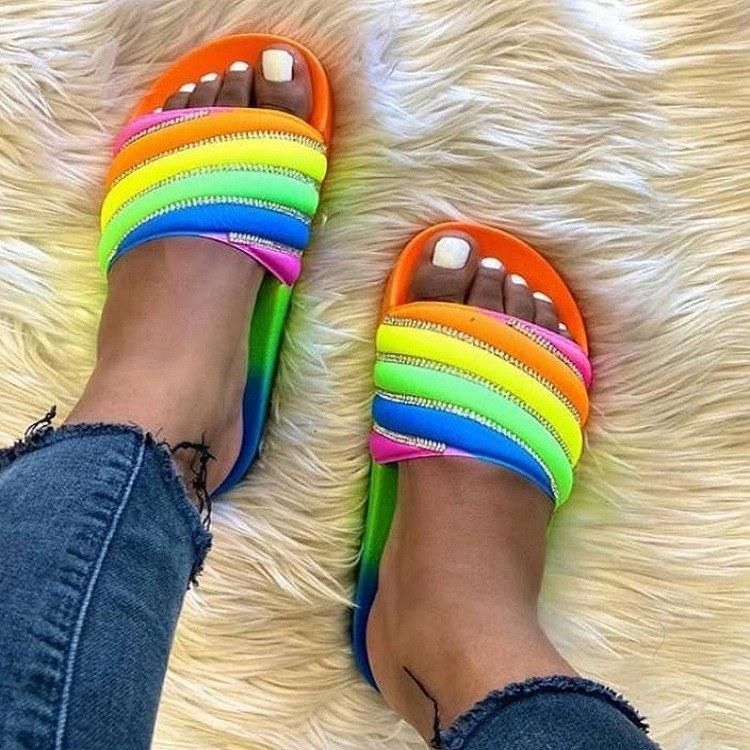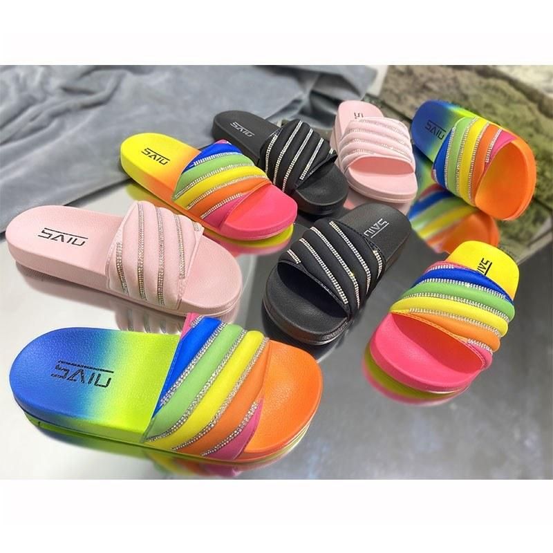 Buy Sandals And Slippers Women's Summer Wear Outside Wear Rhinestone Fashion Rainbow Slippers in Nigeria