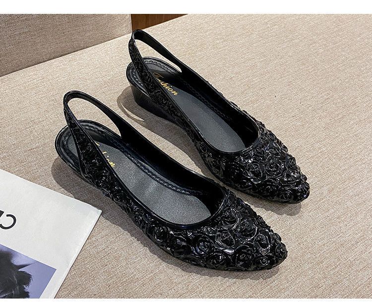 - material pvc Closing mode Foot sleeve Style Elegant Style Fashion Sandals Listing season Summer 2022 Manufacturing process Injection Molding Insole material PU heel style Slope heel Toe style Baotou Function Waterproof, light and non-slip Pattern Solid color Popular elements Shallow mouth, waterproof platform Applicable population Youth (18-40 years old) Applicable occasions Daily