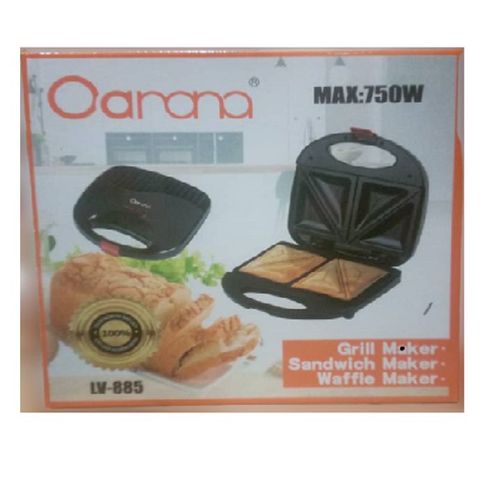 - It's designed to Sandwish 3 items at a time, perfect for breakfast, lunch or light dinners, thermostat control and non-stick coating; 2 slice sandwich maker, pilot lights indicator. The sandwich grill does more than lunch. This versatile product also makes omelette and french toast; thermostat control and non-stick coating