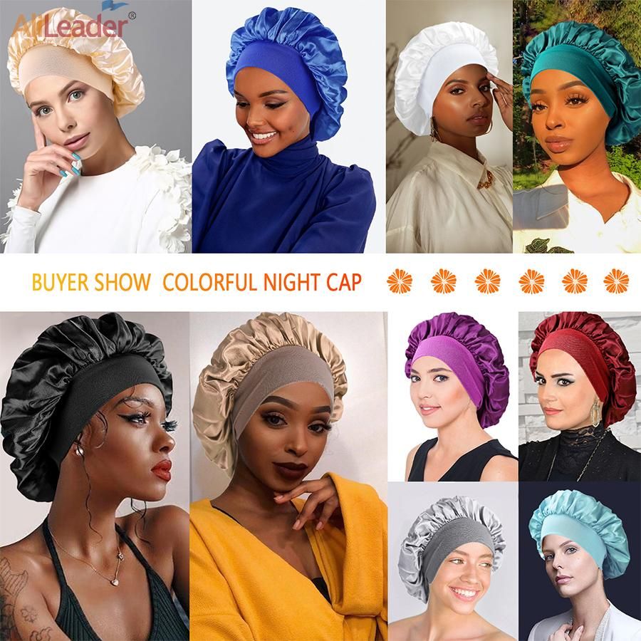 Wide Elastic Band Women Satin Night Sleep Cap Hair Bonnet Hat Silk Head Cover Women's Satin Solid Sleeping Hat Night Sleep Cap
