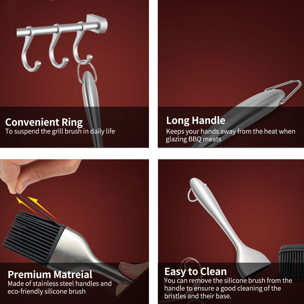 [Long Handle]Long handle keeps your hands away from the heat when glazing BBQ meats. Stainless steel handle to ensure a good quality for lifetime using.
