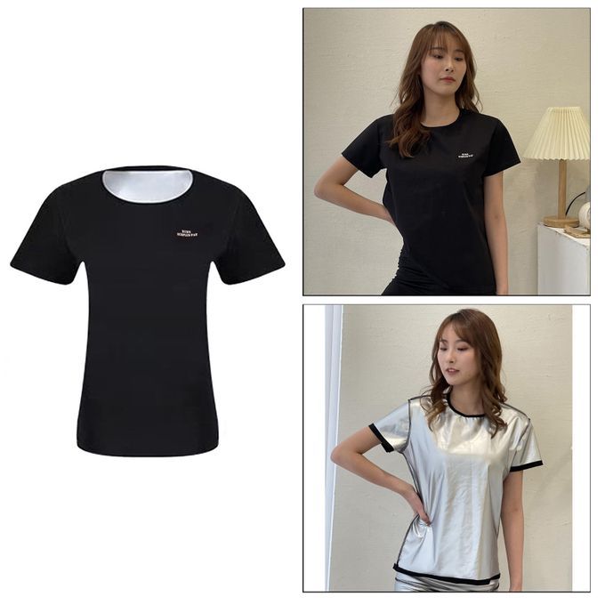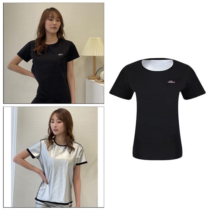 -Women fitness sauna suit T-shirt shirt made of heat-trapping polymer fabric and milk fabric comfortable, soft, durable and reducing chafe