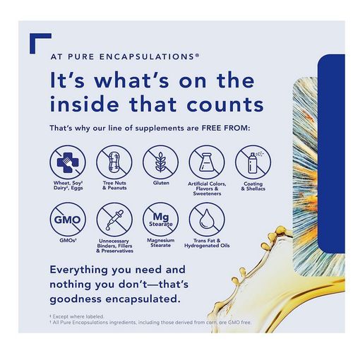 Pure Difference: What makes us different isn't just our process or what goes into our supplements -- what we leave out matters, too. Pure Encapsulations products are FREE FROM wheat, eggs, tree nuts & peanuts, gluten, artificial colors, flavors & sweeteners, coatings and shellacs, GMOs, and unnecessary binders, fillers & preservatives.