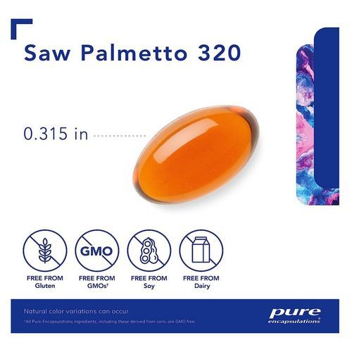 Throughout the world‚ an herb called saw palmetto has been used by men to support their overall well-being. Specifically‚ it works to support the prostate. Your prostate is a gland that produces semen‚ and it surrounds the tube that carries urine out of the bladder in order to eliminate liquid waste. Saw Palmetto 320 by Pure Encapsulation promotes the healthy metabolism of testosterone‚ which is the primary male sex hormone. Testosterone levels may decline with age; therefore‚ a lack of testosterone may be related to the increased chance that older males have of developing an enlarged prostate. The prostate is normally supposed to be walnut-sized. In addition‚ the saw palmetto extract in Saw Palmetto 320 works to support the urinary tract. This is because it may alleviate symptoms associated with benign prostatic hypertrophy (BPH). While it typically isn't a sign of more serious health problems‚ an enlarged prostate can put increased pressure on the urethra; as a result‚ you may feel the need to urinate more frequently--having to wake up and go to the bathroom at night is common. Another common--and sometimes embarrassing--indication of BPH--is dribbling after urination. Every softgel of Saw Palmetto 320 contains 320 milligrams of Serenoa repens (saw palmetto) fruit extract. This extract has been standardized to ensure that it provides sufficient levels of active compounds: 0.15 percent phytosterols and 85 percent total fatty acids. Phytosterols are plant sterols that may support cardiovascular health by latching onto cholesterol receptors in the intestines. Take one or two softgel capsules daily‚ in divided doses between meals. At the recommended dosage‚ each 120-softgel bottle of Pure Encapsulations' Saw Palmetto 320 should last from two to four months. Pure Encapsulations seeks to formulate and manufacture high-quality‚ hypoallergenic dietary supplements. Quality control during the formulation and manufacturing process is paramount. All Pure Encapsulations products are made with the most bioavailable ingredients possible.