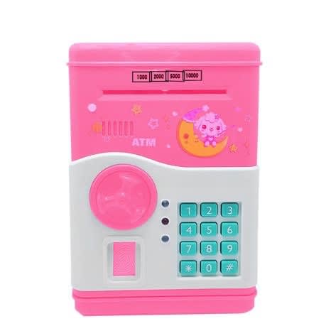 It is an electronic piggy bank that enable you ward to learn how to save, it takes money notes like an ATM machine and there is an opening to drop coins. With the password, nobody can have access to the piggy bank without authorization.
