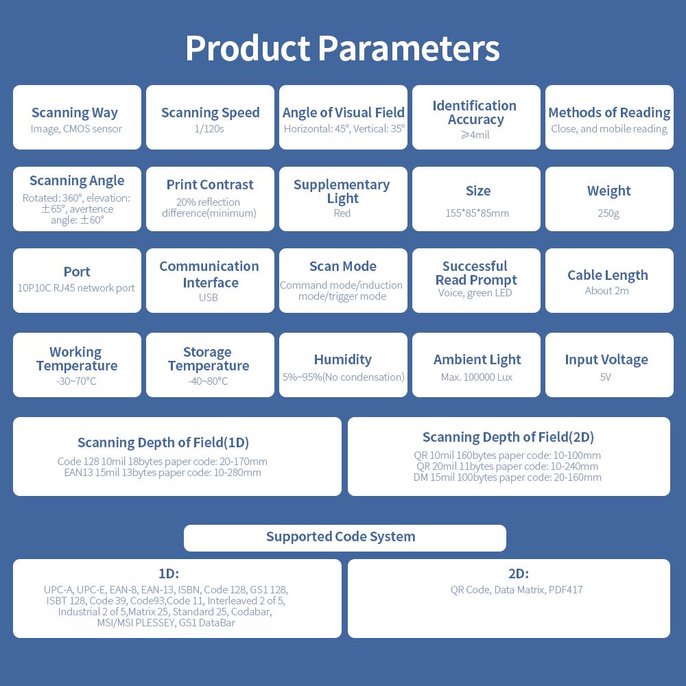 1/120s scanning speed, faster and more sensitive scanning, saving time cost, no queuing. Built-in induction light and buzzer prompt, adapt to noisy environment.