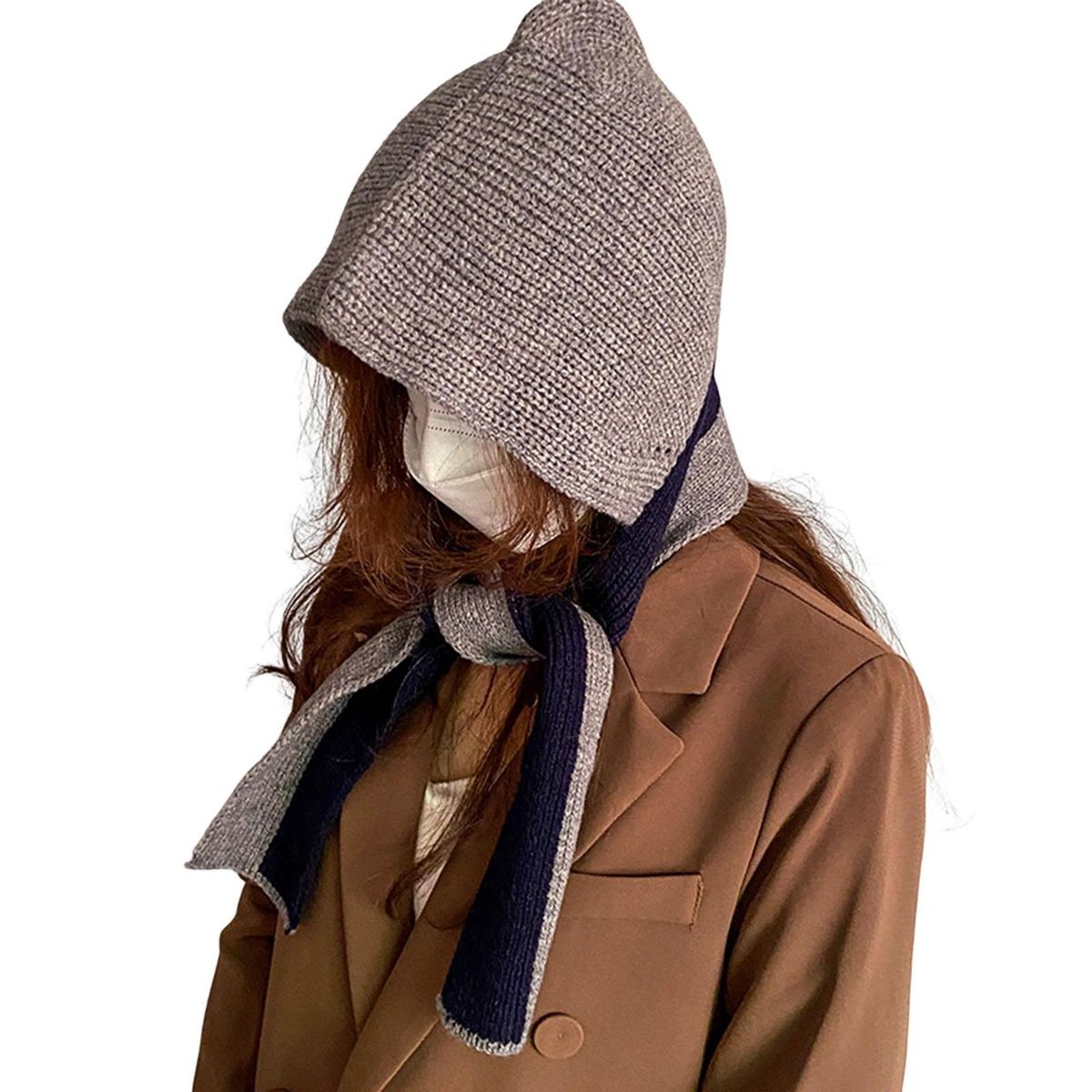 Buy Scarf Hat Women Winter Patchwork Color Hooded Scarf Grey in Nigeria