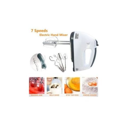 DescriptionFeatures:7 speed for stir and mixing.Easy to hold with plastic handler.Eject button with safety device.Very durable and practical.Easy to use and clean.Two type stainless steel stirrer.Two types of stirrer for beating eggs, kneading dough, mixing, stirring etc. Specification:Name: Household Handheld Electric Egg BeaterFunction: beat eggs, flour, butter playPower: 180WVoltageFrequency:Plug:Work stalls: 1-7 speed gearEgg beater placed: handheldMaterial:ABS Plastic+Stainless steelLength:18cm/7.029'' Height:13cm/5.12'' Width:7cm/2.76''Cable length:100cm/39.4''Package size:19x7.5x15.5cm/7.48x2.95x6.1''Color: