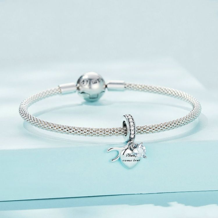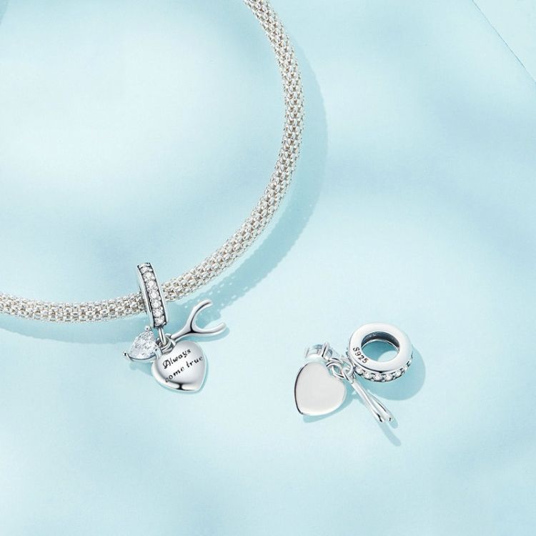 SCC2425 Heart Zircon Lettering Wishing Bone Bracelet Beads
