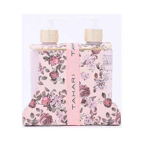 The Tahari 2-piece Luxury Scented Hand Soap & Hand Lotion Set is peony plum scented. It comes in a 300ml pump bottles each .
