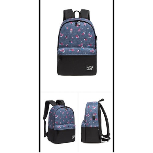 Buy School Backpack With Usb Floral & Black 17'' in Nigeria
