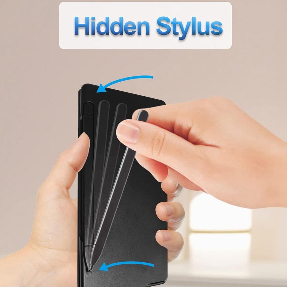 It's a lightweight calculator with a writing pad, foldable design, and weighs only 4 ounces. It's so small that you can put it in your pocket, take it out quickly when you need it and use it right away, convenient for taking notes calls and quick notes on your phone.