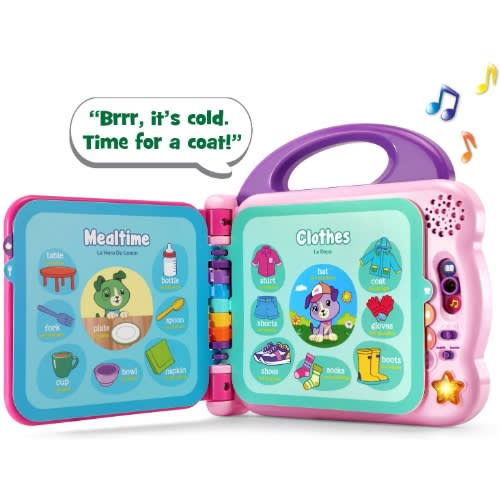 Flip the switch to learn new words including colors, objects and animals in both English and Spanish.