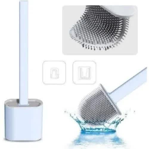 Silicon Toilet Brush With Water Drip Base And Wall Suction Holder