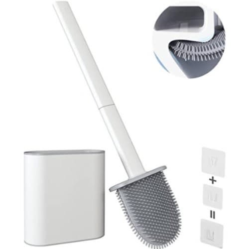 Toilet Brush Set: Silicone toilet brushes made of high quality ABS + silicone brush head, The anti-adhesive coating, no dirt can attach to the bristles and thus ensures clean.