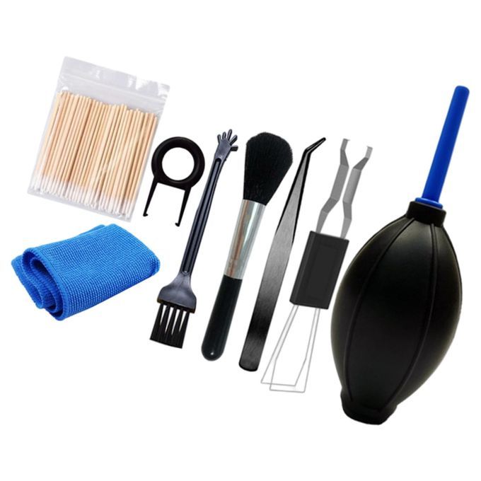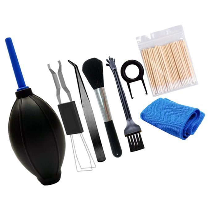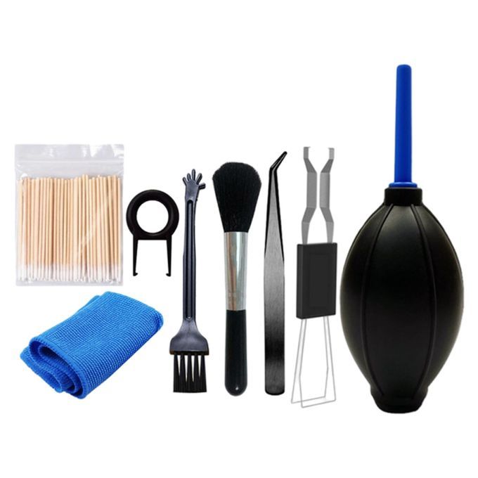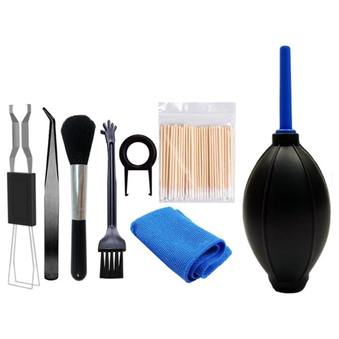 1 Piece Air Camera Blower1 Piece Debris Tweezers 1 Piece Crevice Brush 1 Piece Mechanical Keyboard Key Puller 1 Piece Dust Cloth 1 Piece Key Puller 1 Piece Brush 1 Pack Pointed Cotton Swabs