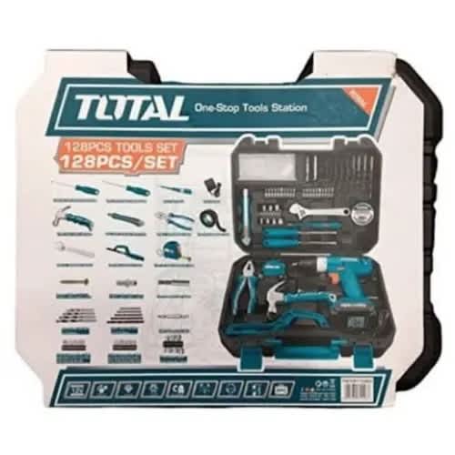 Total Screwdriver Tools Set With 12v Cordless Drilling Machine - 128pcs