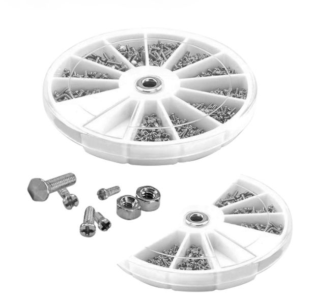 600 piecesThe assortment contains the following sizes:M1.2 nutM1.4 nutM1x3.6M1.2x3.6M1.4x2.4M1.4x2.6M1.4x2.8M1.4x3.0M1.4x4.0M1.4x4.5Right Hand M1.4x6M1.6x4.5