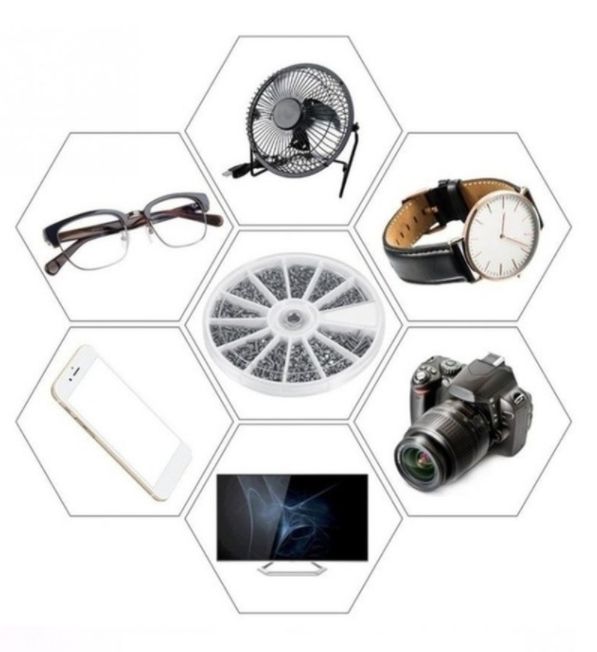 Description:1 material: stainless steel, solid and never rust, long time use.2. Convenient: Comes with a transparent plastic rectangular box, classified storage, easy to use and store.3. Complete functions: a size chart placed on the cover, can quickly find the required size, time-saving, a good helper for your work.4. Suitable for glasses, watches, electronic products or any other products in need.