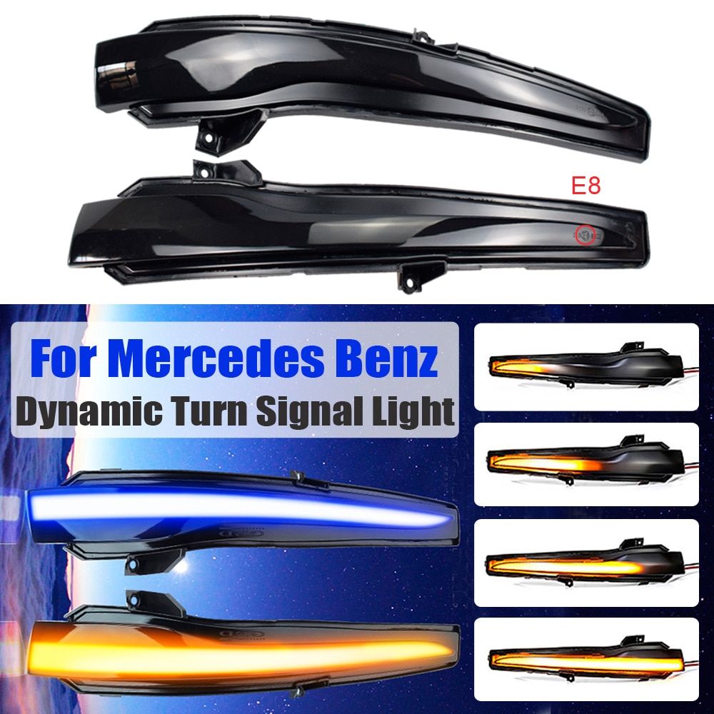 Compatibility: For Benz -For Benz C Cla W205 New C180 C200 C250 C300 C350 C350e C400 C43 C63 Saloon & Coupe 2015-2018 -For Benz S Cla W222 S400 S400L S450 S500 S500L S550 S550e S560 S600 S600L S63 S65 2014-2018 -For Benz GLC Cla X253 GLC250 GLC300 GLC350e GLC63 2016-2018 -For Benz E Cla W213 E200 E250 E300 E350 E400 E500 E550 E43 E63 2016-2018 - For Benz V Cla W447 2014-2018 Package included: 2x Side Mirror Turn Signal Light( Left and Right). Note: The yellow turn signal is plug and play install, very easy and convenient. For the blue light function, your first choice is to connect with the puddle light power if you have. Or you connect with the side mirror flip power. If you don't have all these two function, then you have to open the door panel to connect with the positive to get power, it is a little bit complicated. Anyway, you can just use tape to pack it and let it be or cut the green wires off , use the yellow turn signal only. MATERIAL: ABS Light color: Blue/Yellow Dynamic Turn Signals Long lifespan, More Safety, 100% Waterproof Installation Instruction is NOT included. Product Advantages: Plug and play, No wiring, No ! Error free! Dynamic sequential, much sport! Brighter than one! Dynamic turn signal,scroll smoothly.Easier to be seen by other drivers when you are turning right/left. 1.Please check our pictures to ensure ours match with the wing mirror on your vehicle. 2.Please allow slight manual measurement deviation for the data. For the blue light function, 1. Connect with the puddle light power. ar the car is or locked, then dynamic blue light will be on for 5-15 seconds. 2. Connect with the side mirror flip power. ar the car is , then dynamic blue light will be on for 5-15 seconds. 3. Open the door panel to connect with the positive to get power. ar the car is or locked or the turn signal lamp is turned off, then dynamic blue light will be on for 5-15 seconds. Anyway, you can just use tape to pack it and let it be or cut the wires off , use the yellow turn signal only.